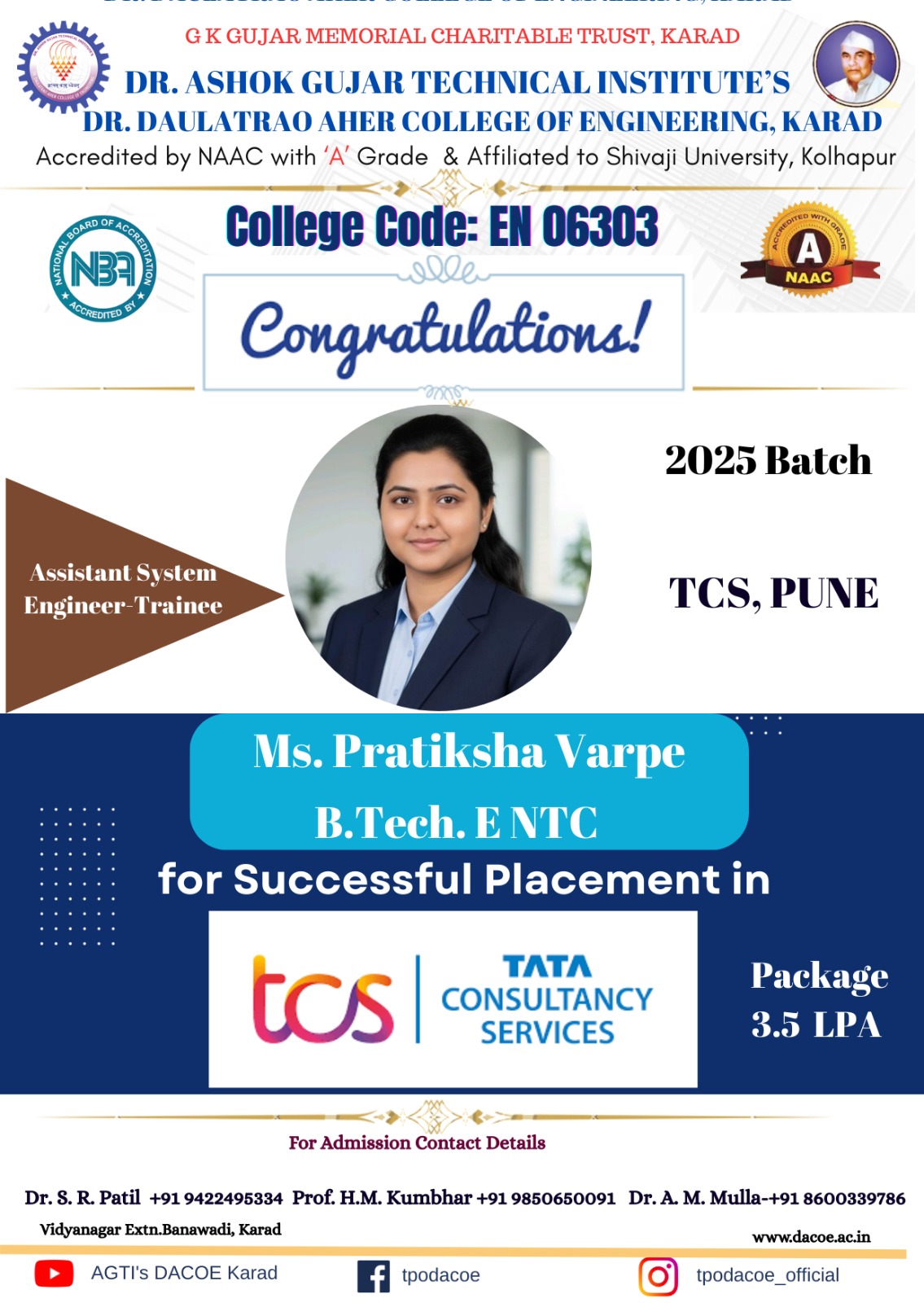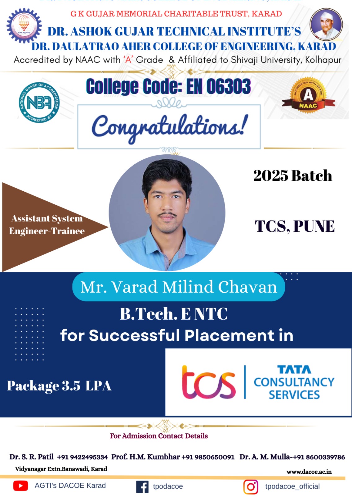 Mr Vaibhav Jadhav- Alumni Mechanical 2020 batch selected in Interface Insoft Solutions Pune and donated 100 books to DACOE-Library