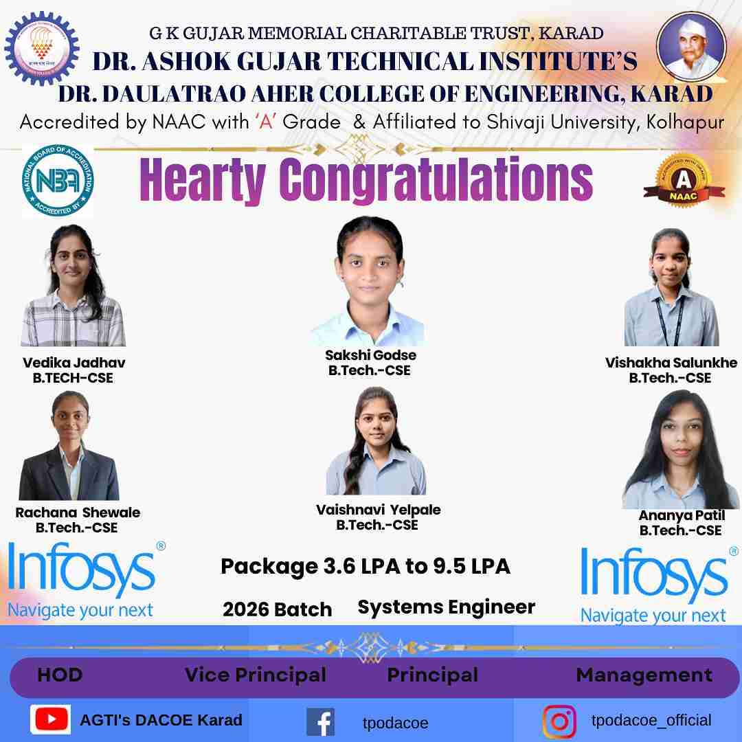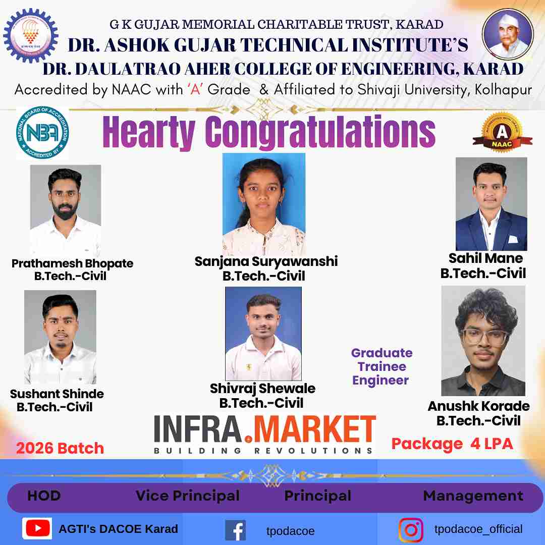 Mr Vaibhav Jadhav- Alumni Mechanical 2020 batch selected in Interface Insoft Solutions Pune and donated 100 books to DACOE-Library